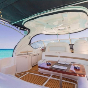 Com capacidade para até 15 pessoas, este iate proporciona um dia de sofisticação e conforto em alto mar.