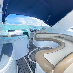 Com capacidade para até 15 pessoas, este iate privado proporciona um dia de relaxamento e contemplação em alto mar.