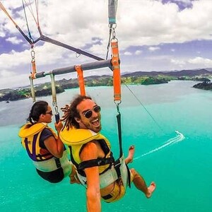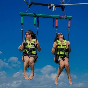 Voe livremente de parasailing e contemple as vistas panorâmicas mais deslumbrantes de Cancún, incluindo a Zona Hotelera, a Laguna Nichupté e Isla Mujeres.