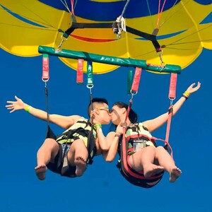 Nosso serviço inclui um táxi aquático da marina até o ponto de lançamento do paraquedas, sem necessidade de experiência prévia, vestimenta especial ou habilidade para nadar. A atividade é adequada para crianças e adultos, sem esforço algum.
