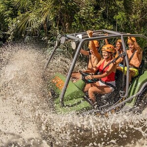Prepare-se para explorar cavernas espetaculares, nadar em rios subterrâneos cristalinos e voar pelas copas das árvores em tirolesas emocionantes. Os visitantes também podem experimentar emocionantes passeios de veículos anfíbios, atravessando a selva e mergulhando na lama.